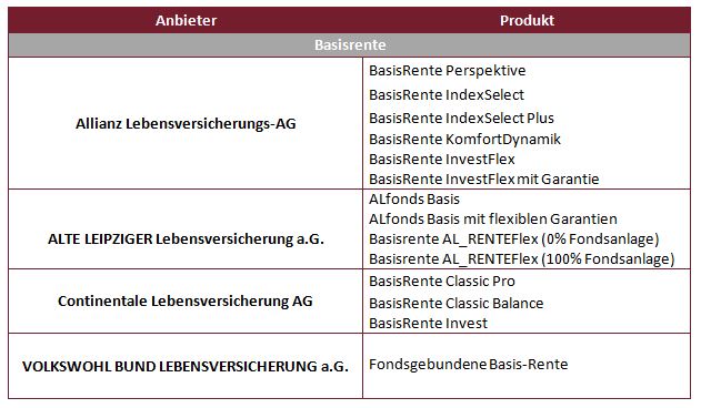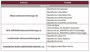 In der neuesten Erweiterung sind mehrere Basisrenten-Tarife neu hinzugekommen: