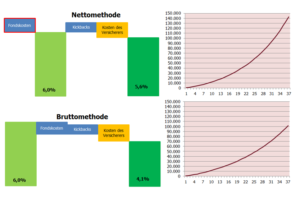Modellrechnung mit einer Wertentwicklung nach Berücksichtigung der Fondskosten (Nettomethode)